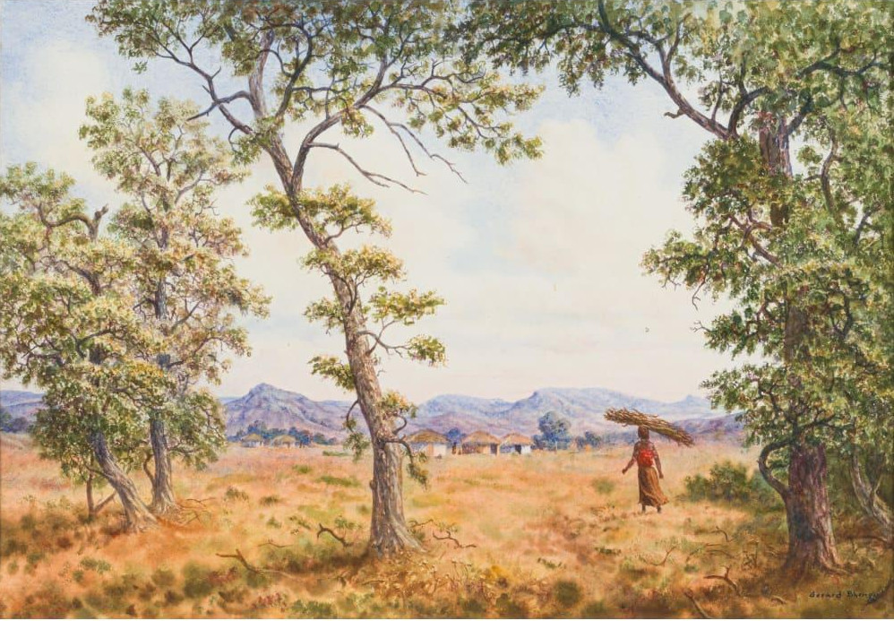 Gerard T. Bhengu (1910–1990) was a celebrated South African artist renowned for his intricate and heartfelt portrayals of rural African life and Zulu culture. Born in Centocow, KwaZulu-Natal, Bhengu’s artistic journey began early, nurtured by local missionaries who recognized his talent. His work is distinguished by its meticulous detail and ethnographic significance, capturing the dignity and beauty of traditional Zulu customs and daily life. Despite the challenges of racial segregation, Bhengu’s art transcended boundaries, earning admiration across diverse communities. Today, his legacy endures as a testament to cultural identity and artistic excellence.